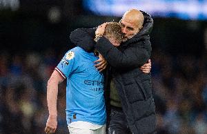 瓜帅再避谈德布劳内续约:这是他本人的问题,我们只管踢好比赛