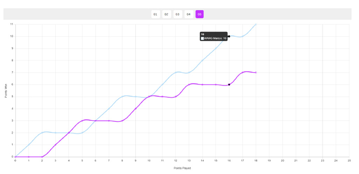 第四局对于王曼昱来说是生死一线,两人4-4后王曼昱一波3-0拉开差距,最终王曼昱这一局11-6速胜拖入决胜局。